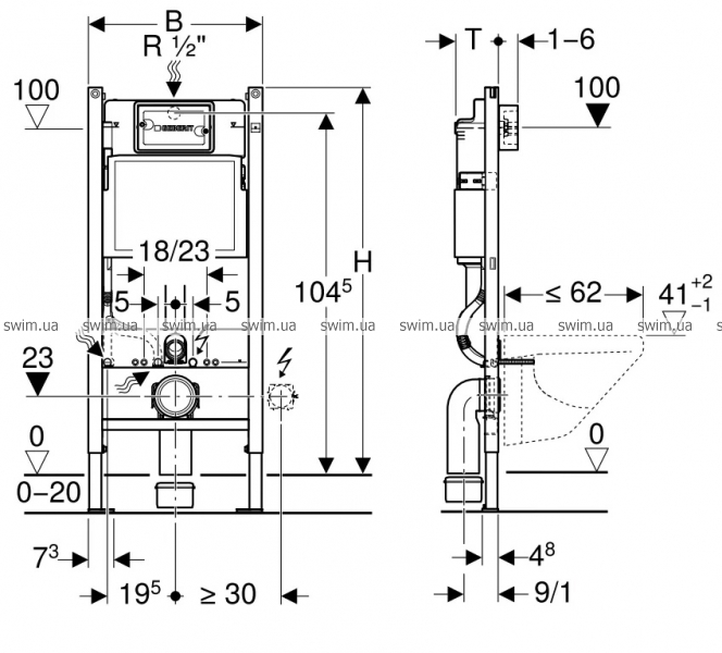 - Режим зливу води: Визначається механізмом системи інсталяції