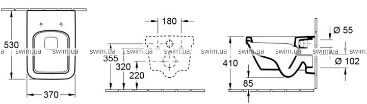 - Габарити унітаза (ВхШхГ) 32.5 х 37 х 53 см