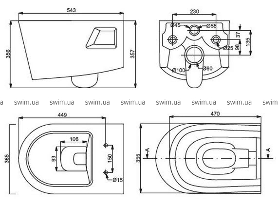 - Габарити унітаза (ВхШхГ) 35.7 х 36.5 х 54.3 см