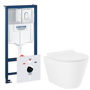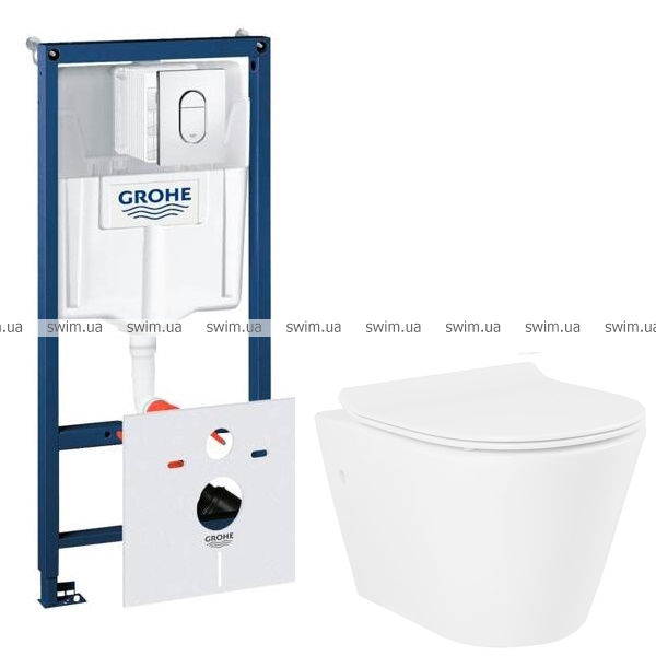 Інсталяція Grohe Rapid SL 38929000 клавіша Arena Cosmopolitan + Унітаз підвісний безобідковий Primera 8320020 TOPIC з кришкою