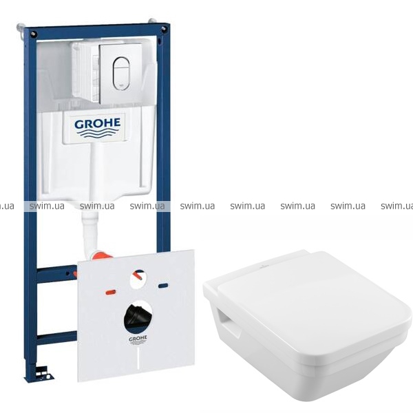 Інсталяція Grohe Rapid SL 38929000 клавіша Arena Cosmopolitan + Унітаз підвісний Villeroy&Boch 5685HR01 OMNIA ARCHITECTURA з кришкою