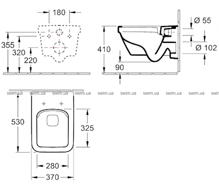 - Габарити унітаза (ВхШхГ) 32.5 х 37 х 53 см