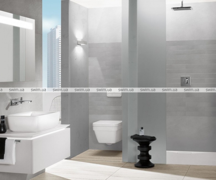 Встановлений перед стіною або в гіпсокартонну перегородку, підвісний унітаз та бачок прихованого монтажу забезпечує оптимальний рівень гігієни та простоту прибирання ванної кімнати.