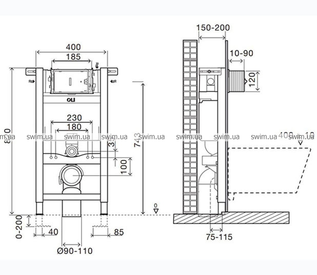 - Комплектація: інсталяційна система, бачок, фановий патрубок, елементи кріплення, комплект з'єднувальних патрубків, шпильки для кріплення