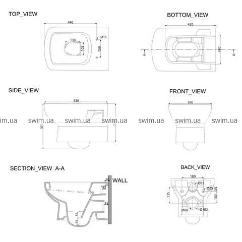 Зливна воронка унітазу ззаду