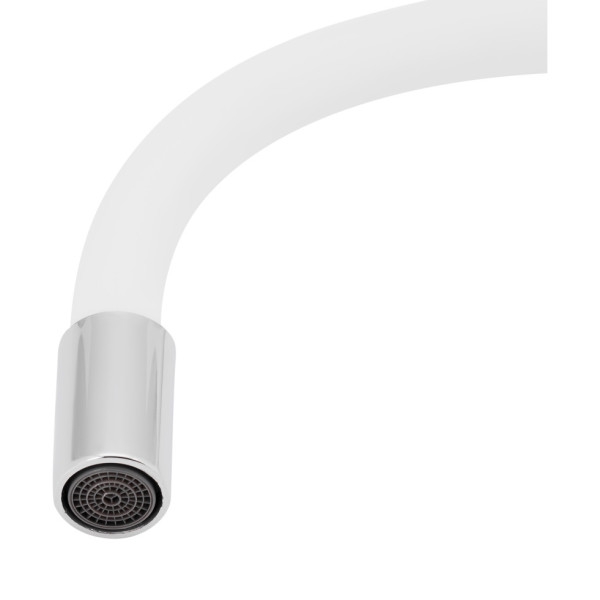 Излив Lidz (CRW) 54 01 261 00 изготовлен из силумина в белом цвете и крепится непосредственно на кухонный смеситель. Благодаря компактным габаритам, он выглядит аккуратно, а благодаря своей высоте и возможности поворачиваться и рефлекторно изгибаться, позволит набирать воду в высокую посуду, а также установить его в удобное для вас положение.