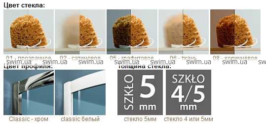 Это надежный продукт, который легко содержать в чистоте. Пристенные профиля позволяют нивелировать неровности стен до 20мм с каждой стороны. В кабинах используются прочные одиночные подшипниковые ролики. В кабинах используется каленое стекло толщиной 5мм и 4мм. Доступные цвета стекла: прозрачное, матовое, коричневое, графитовое и фабрик.