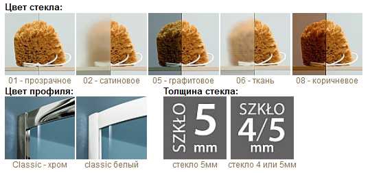 Это надежный продукт, который легко содержать в чистоте. Пристенные профиля позволяют нивелировать неровности стен до 20мм с каждой стороны. В кабинах используются прочные одиночные подшипниковые ролики. В кабинах используется каленое стекло толщиной 5мм и 4мм. Доступные цвета стекла: прозрачное, матовое, коричневое, графитовое и фабрик.