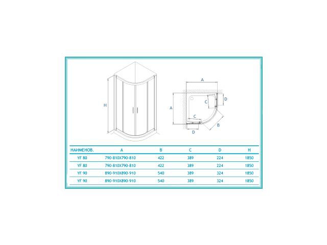 • Душевой уголок YF состоит из двух неподвижных стеклянных частей и изогнутых раздвижных частей