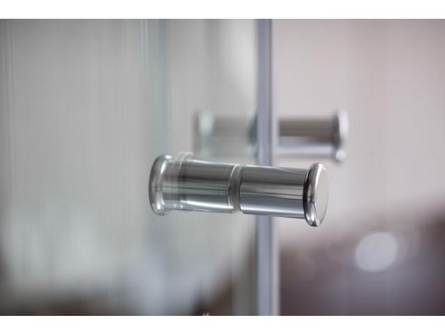 - Двойные ролики в верхней части стекла и нижний механизм расфиксации упрощают движение дверей и уход за кабиной