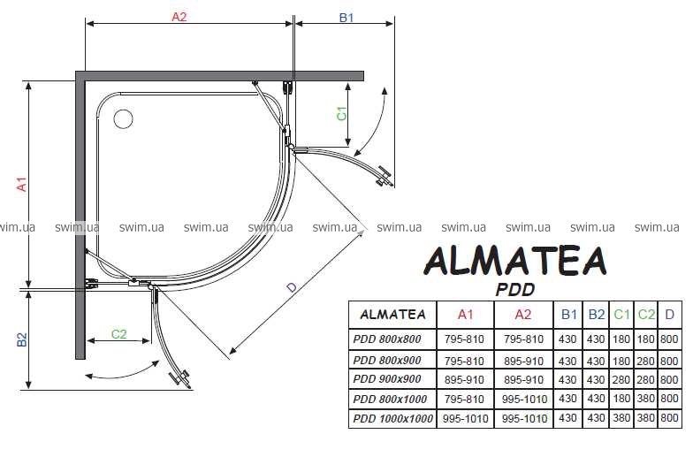 Кабины Almatea Gold создавались согласно актуальным рыночным трендам и с мыслью о клиентах ценящих простоту и благородство форм. Легкость конструкции удалось получить благодаря соединению больших листов стекла и хромированных петель. Вход в кабину широкий и удобный. Петли оснащены подъемным механизмом. Конструкция завесов и пристенных профилей позволяют легко содержать кабину в чистоте. Стекло имеет в стандарте покрытие Easy Clean, которое предотвращает осаждение камня и других загрязнений на стекле. Герметичность кабины обеспечивают магнитные уплотнители на дверях и эластичные уплотнители между дверями и неподвижными частями кабины. Особое внимание стоит обратить на высоту кабины – 1950мм. Благодаря этому кабины хорошо смотряться на низких поддонах.