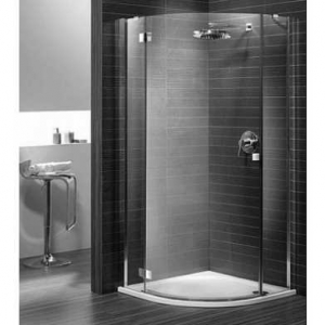 Полукруглая кабина с одностворчатой распашной дверью и узкими боковыми стенками.