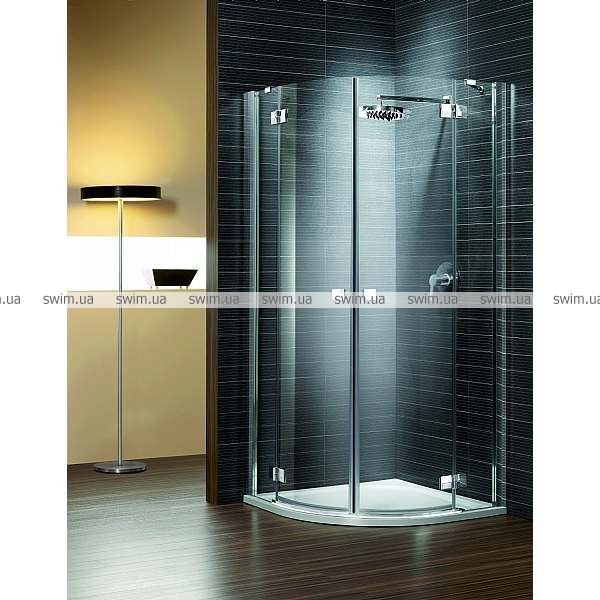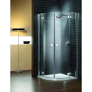 Полукруглая кабина с двустворчатой распашной дверью и узкими боковыми стенками.