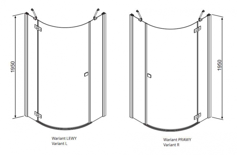 Полукруглая кабина с одностворчатой распашной дверью и узкими боковыми стенками.