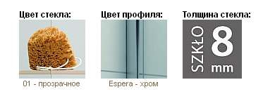 Серия кабин Espera характеризуется простотой, минимализмом и современным дизайном. Это кабины, в которых количество алюминиевых профилей минимально ограничено, а высота составляет 2 метра. Во всех моделях используется стекло толщиной 8 мм с покрытием Easy Clean.