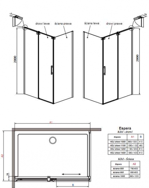 Прямоугольная кабина Espera KDJ это комбинация раздвижной двери и боковой стенки.