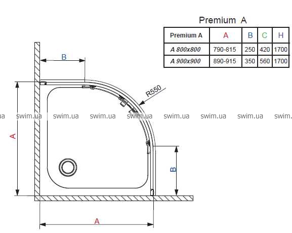 В состав серии входят полукруглые кабины высотой 1700мм предусмотренные для монтажа на глубоких поддонах и стандартные 1900мм.