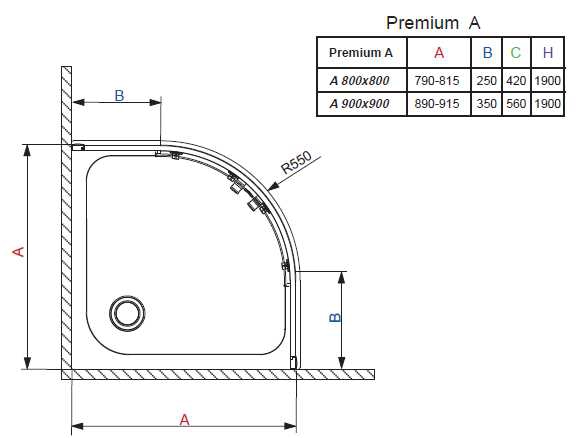 В состав серии входят полукруглые кабины высотой 1700мм предусмотренные для монтажа на глубоких поддонах и стандартные 1900мм.
