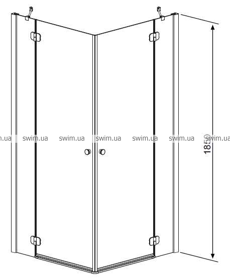Квадратная / прямоугольная кабина с двустворчатой дверью и узкими боковыми стенками.