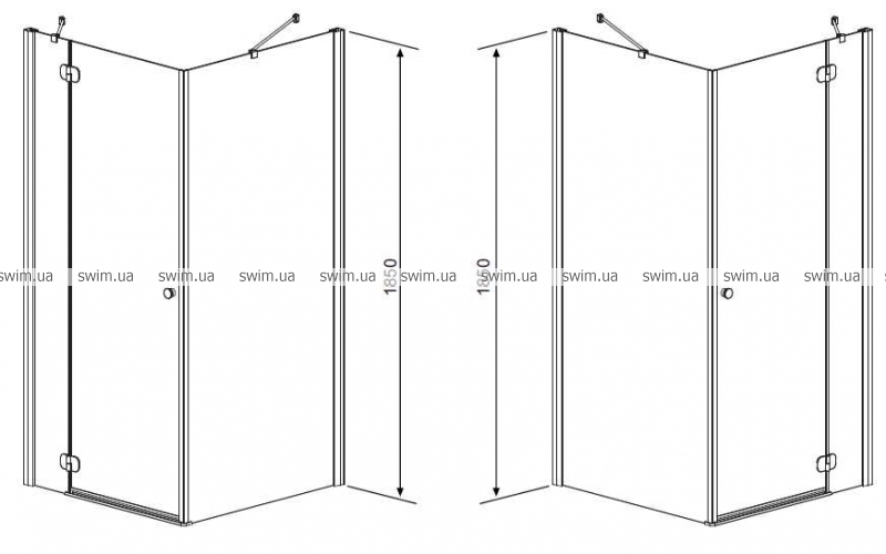 Квадратная/прямоугольная кабина с одностворчатой дверью на петлях.