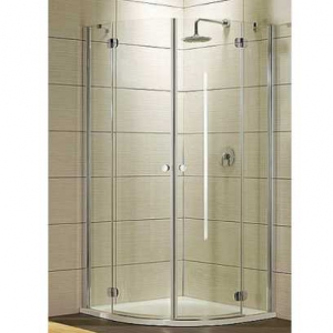 Полукруглая кабина с двустворчатой распашной дверью и узкими боковыми стенками.