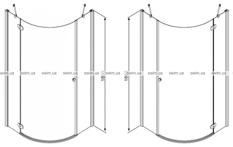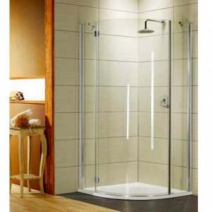 Полукруглая кабина с одностворчатой распашной дверью и узкими боковыми стенками.