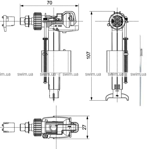 - Універсальний наповнювальний клапан для всіх бачків ТЕСЕ, керамічних бачків та багатьох застінних бачків інших виробників