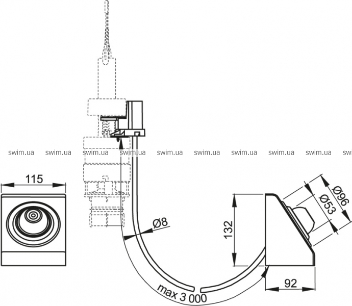 - Применяется в туалетных комнатах для людей с ограниченными физическими способностями или в тех случаях, когда систему смыва необходимо установить вне бачка унитаза.