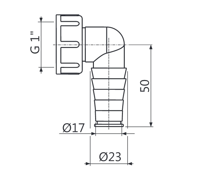 P0048ND ШТУЦЕР (ПОДВОДКА) ДЛЯ ШЛАНГА С РЕЗЬБОЙ G1"/17–23