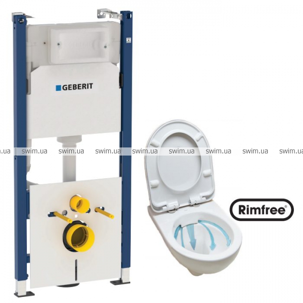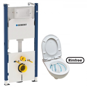 Комплект 5 в 1 унитаз подвесной Kolo Nova Pro Rimfree M33120000 с сидением Kolo Nova Pro M30112000 с комплектом Geberit Duofix 3в1 458.126.00.1