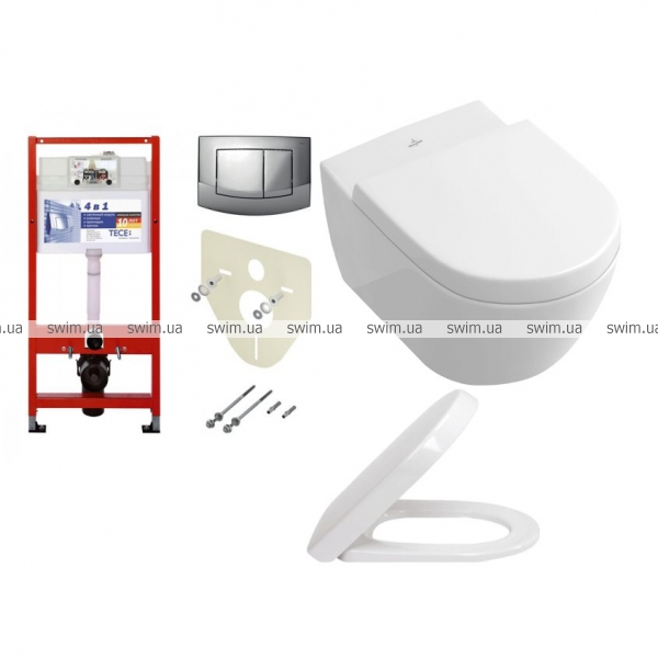 → Комплект 5 в 1 унитаз подвесной Villeroy&Boch Subway 2.0 5614R001 с сидением 9M68S101 и комплектом TECEbase kit 4в1 9400005