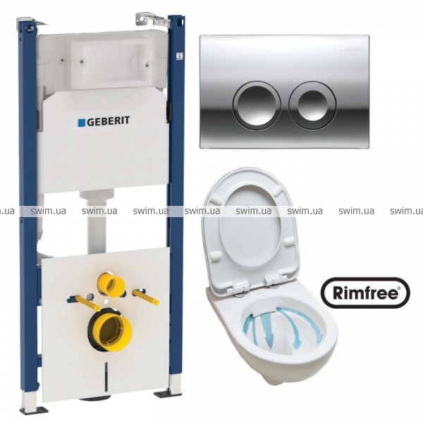 Комплект 6 в 1 унитаз подвесной Kolo Nova Pro Rimfree M33120000 с сидением Kolo Nova Pro M30112000 с комплектом Geberit Duofix 3в1 458.126.00.1 и клавишей смыва Geberit Delta 21 115.125.21.1