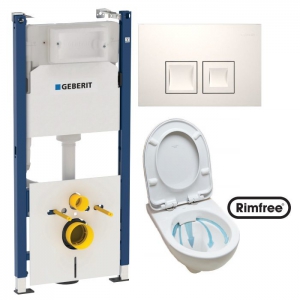 Комплект 6 в 1 унитаз подвесной Kolo Nova Pro Rimfree M33120000 с сидением Kolo Nova Pro M30112000 с комплектом Geberit Duofix 3в1 458.126.00.1 и клавишей смыва Geberit Delta 50 115.135.11.1
