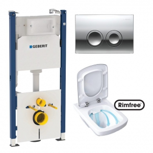Комплект 6 в 1 унитаз подвесной Rimfree с сидением Kolo Nova Pro M39018000 с комплектом Geberit Duofix 3в1 458.126.00.1 и клавишей смыва Geberit Delta 21 115.125.46.1 →