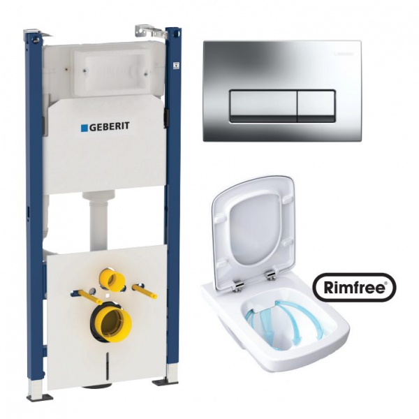 Комплект 6 в 1 унитаз подвесной Rimfree с сидением Kolo Nova Pro M39018000 с комплектом Geberit Duofix 3в1 458.126.00.1 и клавишей смыва Geberit Delta 51 115.105.21.1