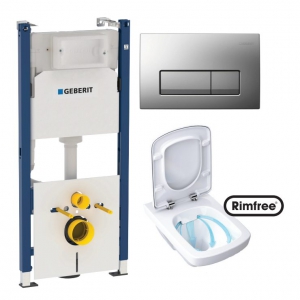 Комплект 6 в 1 унитаз подвесной Rimfree с сидением Kolo Nova Pro M39018000 с комплектом Geberit Duofix 3в1 458.126.00.1 и клавишей смыва Geberit Delta 51 115.105.46.1