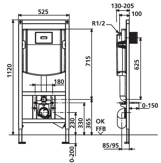 - Монтажная система для унитаза INeo Plus с малым ревизионным отверстием