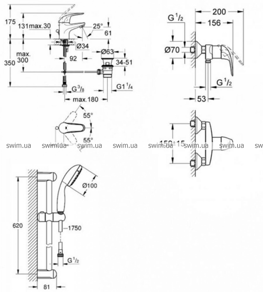 - душевой шланг Relexaflex 1750 мм 1/2" x 1/2"