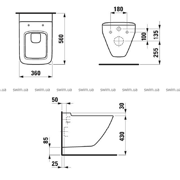 - Тип монтажу: підвісний (для встановлення до стіни)