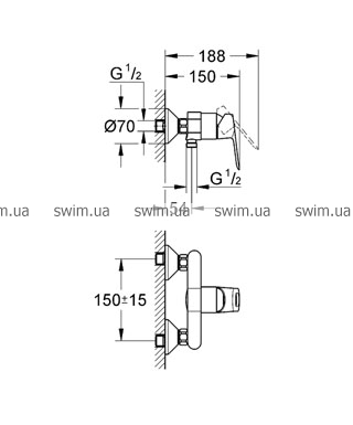 - Grohe BauLoop Однорычажный смеситель для душа 1/2"