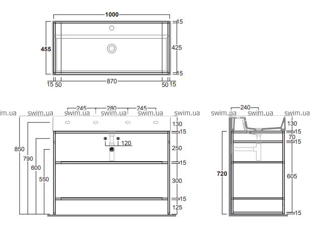 - С двойной открытой полкой под умывальником