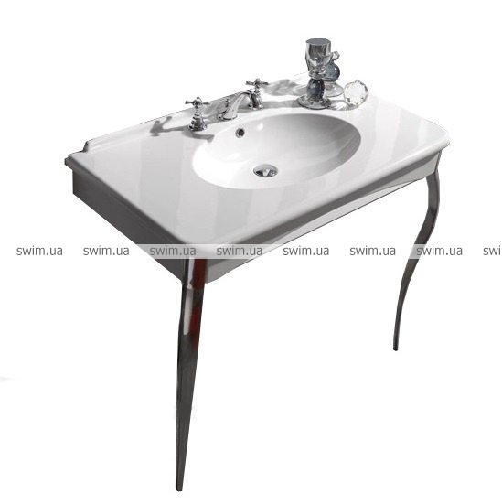 - Консоль 100x55 белая с 1 отверстием под смеситель (три отверстия по запросу) в комплекте с ногами из алюминия