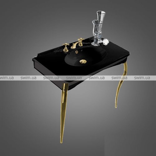 - Консоль 100x55 чёрная глянцевая с 1 отверстием под смеситель (три отверстия по запросу) в комплекте с ногами из алюминия