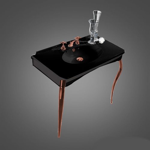 - Консоль 100x55 чёрная глянцевая с 1 отверстием под смеситель (три отверстия по запросу) в комплекте с ногами из алюминия