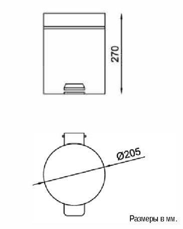 Контейнер для мусора настенный выполнен из нержавеющей стали может быть монтирован на стену, имеются специальные зажимы для полиэтиленовых пакетов. Контейнер имеет крышку с замком.