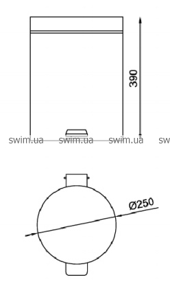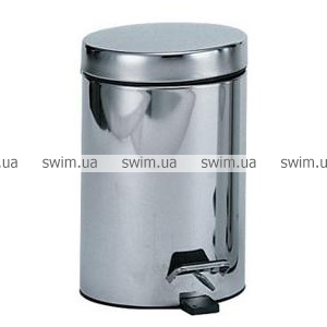 Контейнер для мусора с педалью среднего объема на 12 литров имеет корпус из нержавеющей стали AISI 304 глянцевого оттенка, а также внутренний бак, для удобства пользователя. Ведро оснащено педалью, с помощью которой открывается крышка и приподнимается внутренний контейнер. Форма ведра круглая.