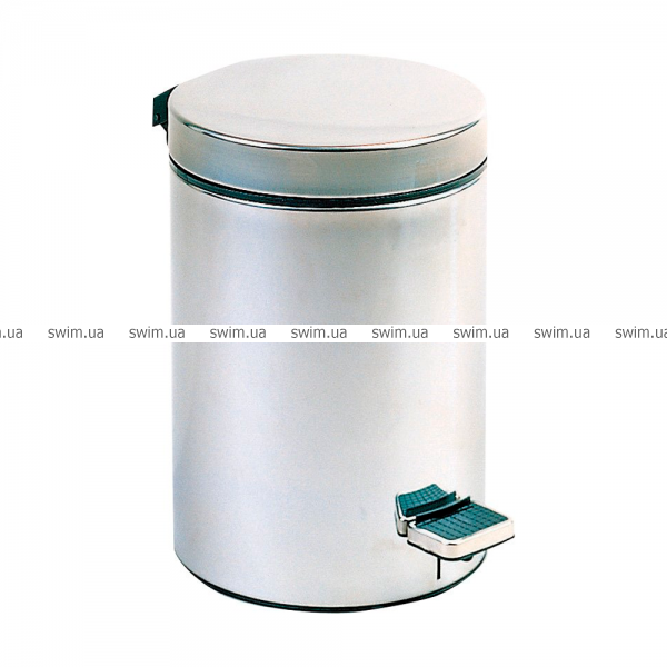 Контейнер для мусора с педалью среднего объема на 20 литров имеет корпус из нержавеющей стали AISI 304 матового оттенка, а также внутренний бак, для удобства пользователя. Ведро оснащено педалью, с помощью которой открывается крышка и приподнимается внутренний контейнер. Форма ведра круглая.
