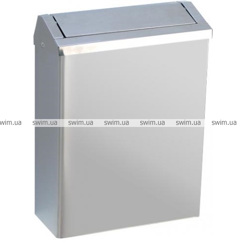 Контейнер для мусора настенный выполнен из нержавеющей стали может быть монтирован на стену, имеются специальные зажимы для полиэтиленовых пакетов. Контейнер имеет крышку с замком.