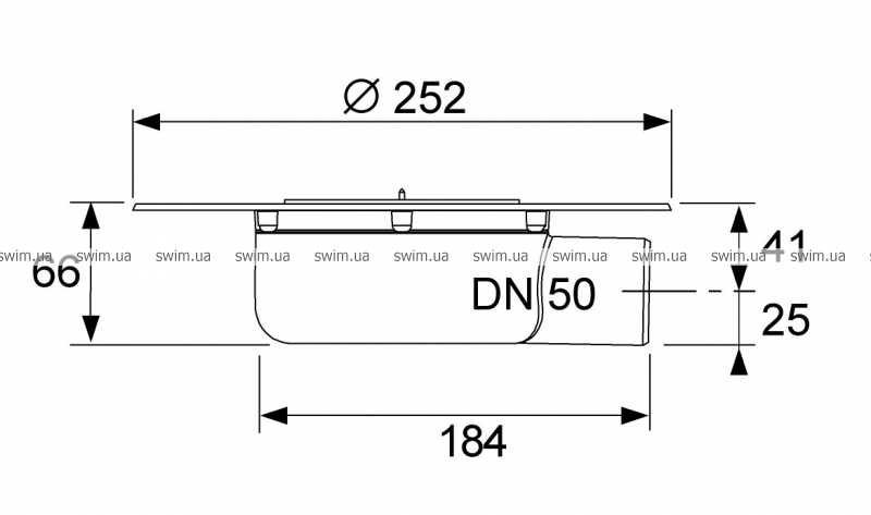 - корпус трапа пластиковый (РР) с горизонтальным отводом DN50