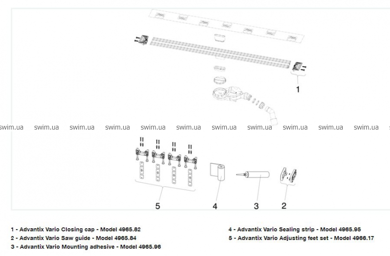 - Корпус Advantix Vario для душевого лотка Advantix Vario, произвольно укорачиваемый, 70 мм